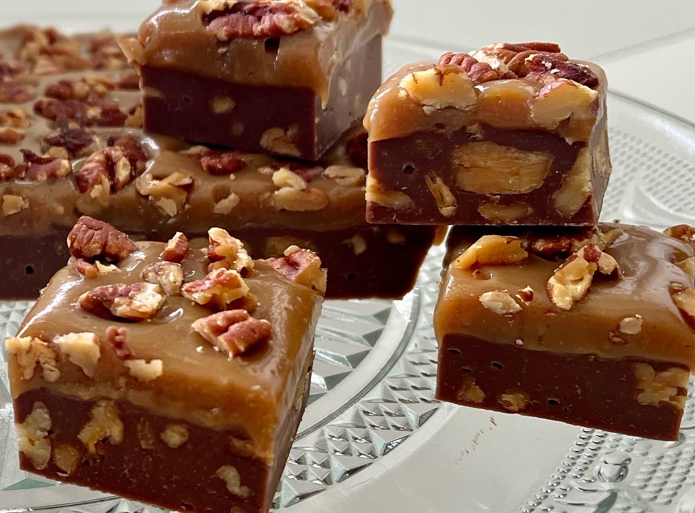 - Fudge van melkchocolade, karamel en pecannoten €2,50 per stuk