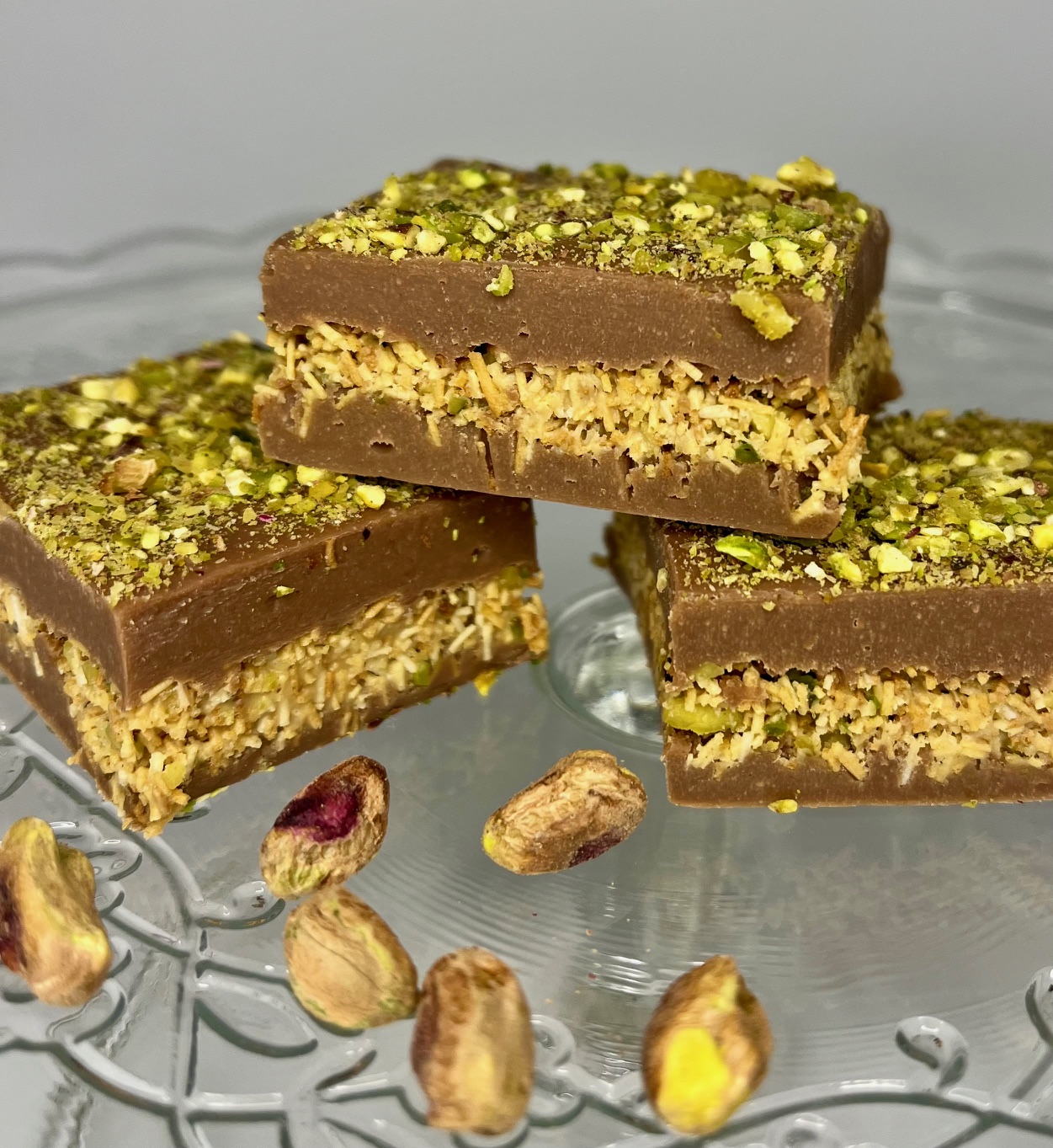 - Fudge van witte chocolade, pistache en cranberry’s €2,50 per stuk