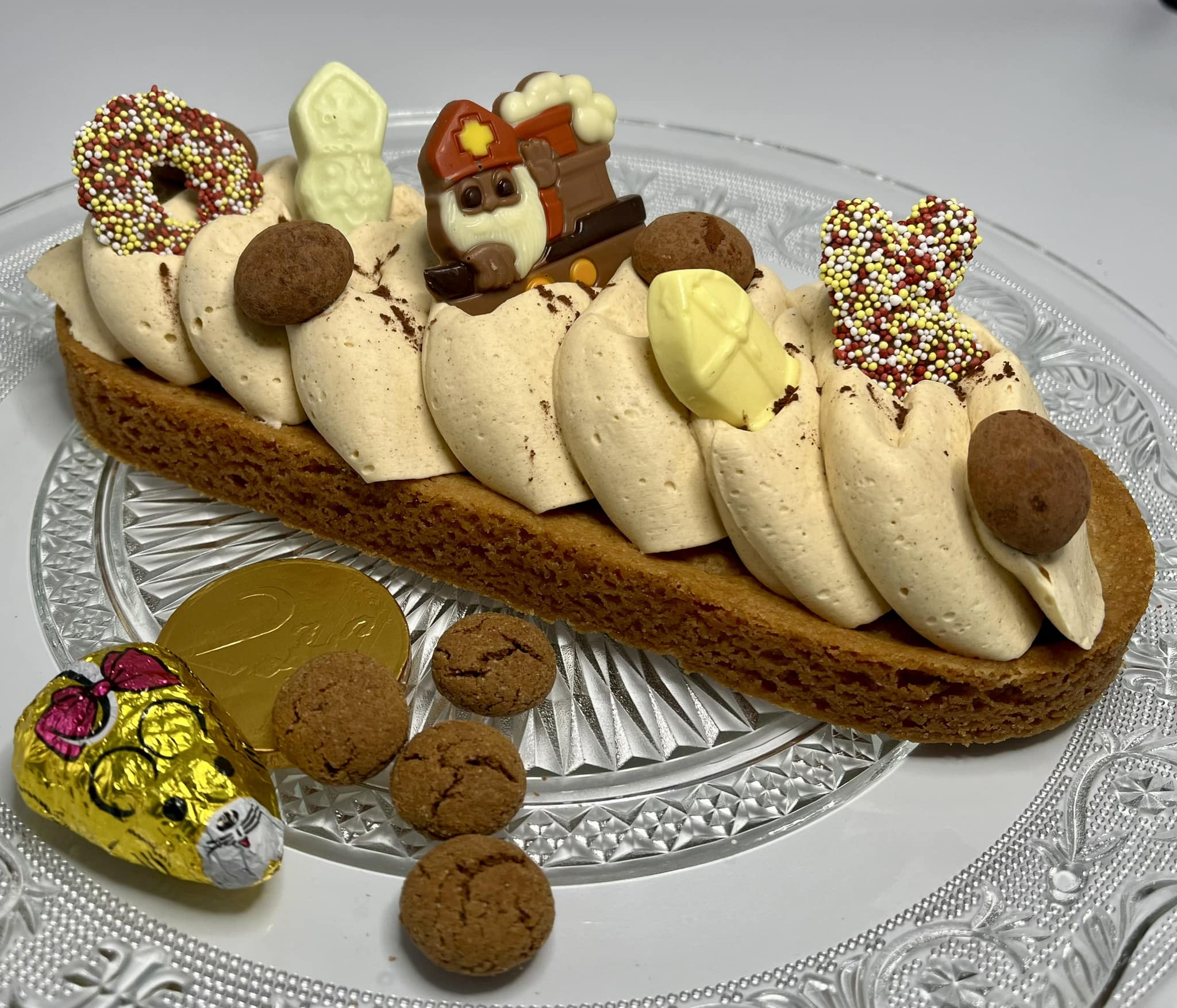 Een heerlijke brosse sloffenbodem met amandelspijs.